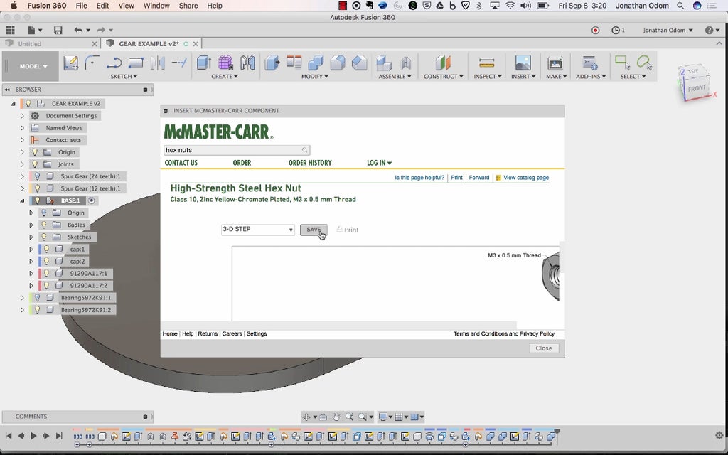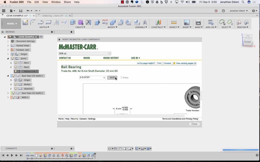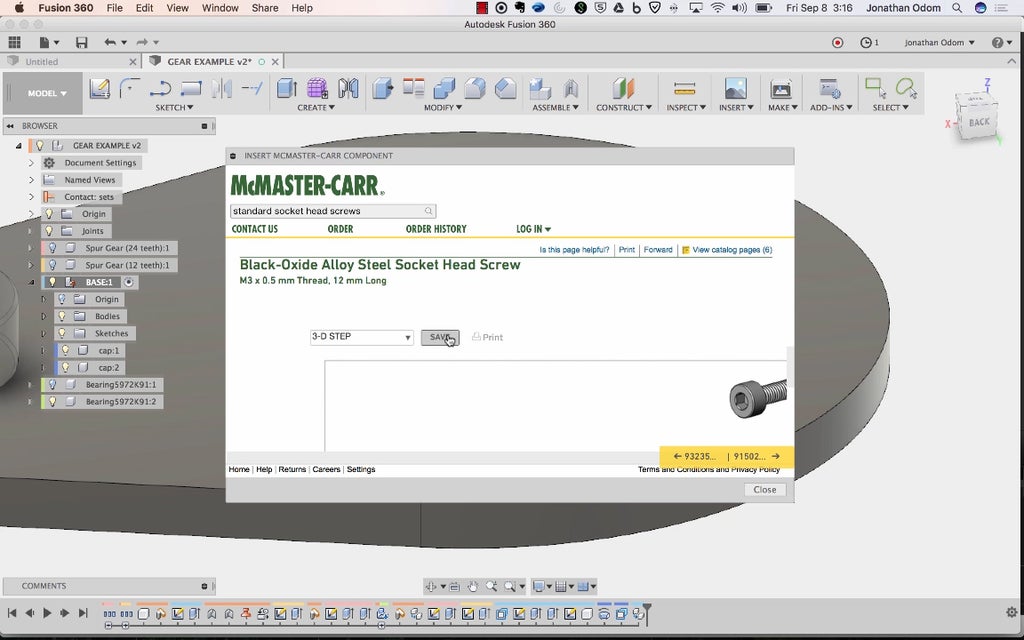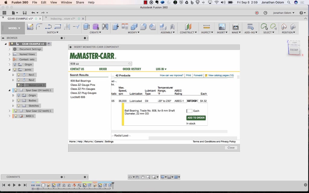 Right away that the gears are fit, it's time to bring in the bearings and add some new features. I attend Insert > Insert McMaster Carr Part to find a aim model.