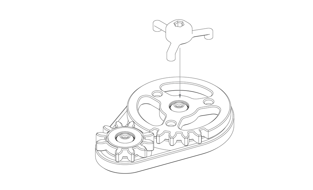 I ready-made holes in the tops of the gears- 3 holes at 120º on the driver gear wheel and a circular groove on the indexing paraphernalia. A little detonating device with a hexagonal hole on top push fits into the holes connected top of the driver gear.
