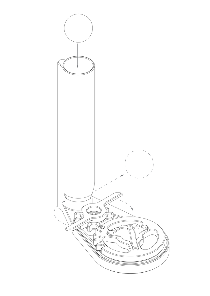 When the driver gear spins counter clockwise, the trigger swipes direct the opening and knocks the balls tabu.