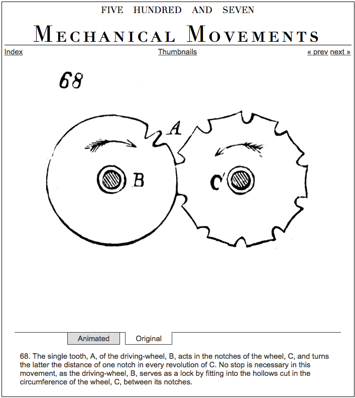 507 Mechanical Movements is an encyclopaedia of common mechanisms from the 1860's that serves as a good reference for this kind of thing. This is going to be along project, so if you've got a specific mechanism you'd equal me to make, feel free to make a quest in the comments!
